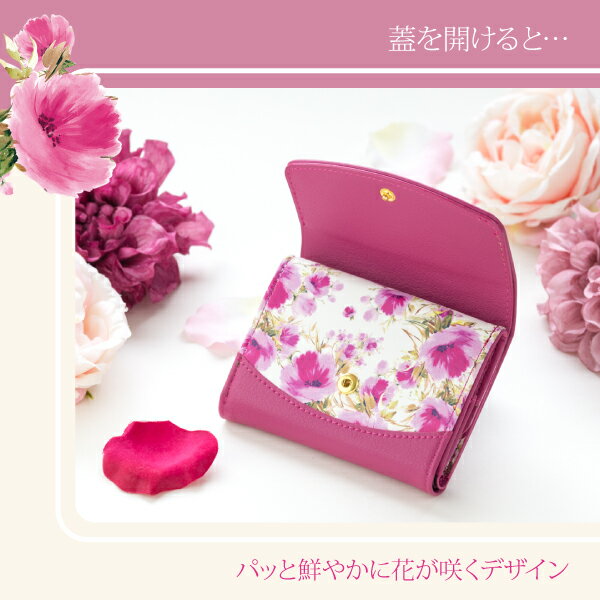 送料無料 財布 レディース ミニ財布 レディース 財布 三つ折り財布 コンパクト財布 おしゃれ 小さい財布 花柄 かわいい おしゃれ ブランド 機能的 カード収納 使いやすい ショートウォレット ブラック 黒 ネイビー 青 レッド 赤 ホワイト 白 ピンク マゼンタ パープル 紫 ボタンカル柄 誕生日 母の日 バレンタイン ホワイトデー プレゼント ギフト FLEUR MiniWallet この商品は意匠登録申請中です。